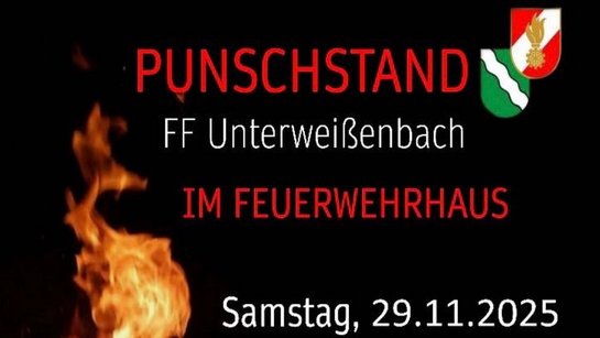 Die Freiwillige Feuerwehr Unterweißenbach lädt alle recht herzlich zum Punschstand 2025 ein!