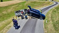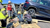 Die Priorität war, dass das unbeschädigte Fahrzeug schonend vom umgestürzten und in einer Böschung liegenden Tandemanhänger getrennt wird.