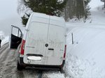 Ein Kleintransporter kam bei winterlichen Fahrbedingungen von der Straße ab und landete im Straßengraben.