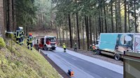 Ein LKW stand neben der Straße, sank dort aufgrund der Bodenverhältnisse ein und geriet dadurch in eine gefährliche Schieflage.
