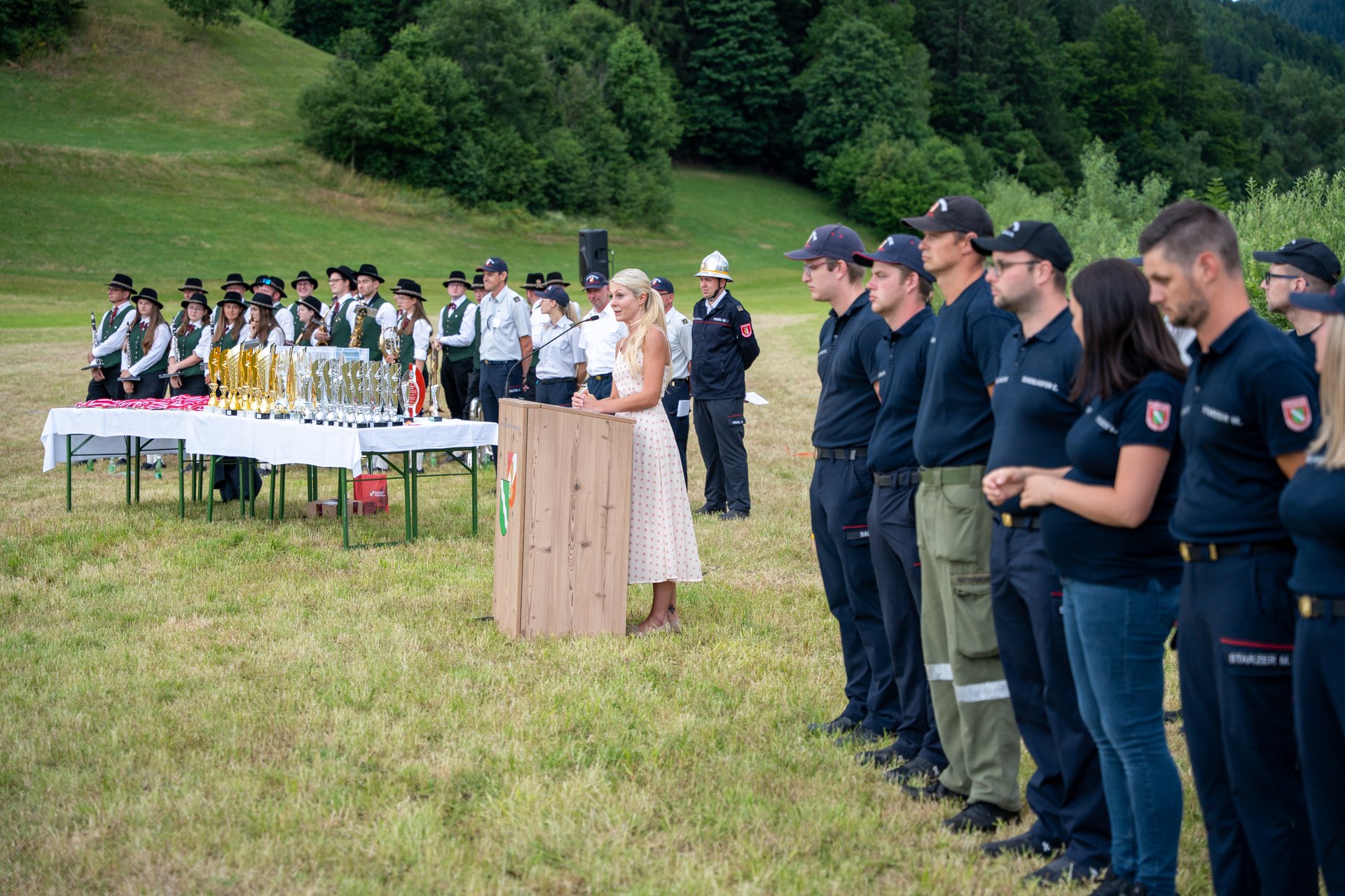 Bei der feierlichen Siegerehrung im Anschluss konnte Bezirksfeuerwehrkommandant LFR Thomas Wurmtödter neben den Abschnittsfeuerwehrkommandanten und Ehrendienstgradträgern noch zahlreiche Ehrengäste begrüßen.