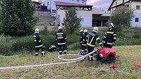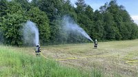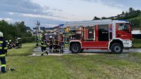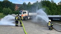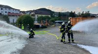 Das Einsatzszenario war ein LKW, der in Vollbrand stand. Ein nebenan abgestellter Lastwagen sowie eine dahinter befindliche Hecke mussten vor den Flammen geschützt werden. Nach Abschluss der Einsatzübung wurden gemeinsam einige der neuen Geräte in unserem RLF vorgestellt und konnten von allen getestet werden.