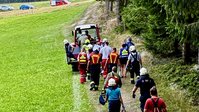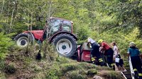 Dazu wurden sämtliche für die Rettung möglicherweise benötigten Gerätschaften rund 300 Meter zu Fuß zum Unfallort gebracht. Mittels Spineboard und Korbschleiftrage konnte die Verletzte schonend aus dem steilen Gelände zu einem nahegelegenen Traktorweg transportiert werden. Dort erfolgte nach Rücksprache mit der Ärztin der weitere Abtransport.